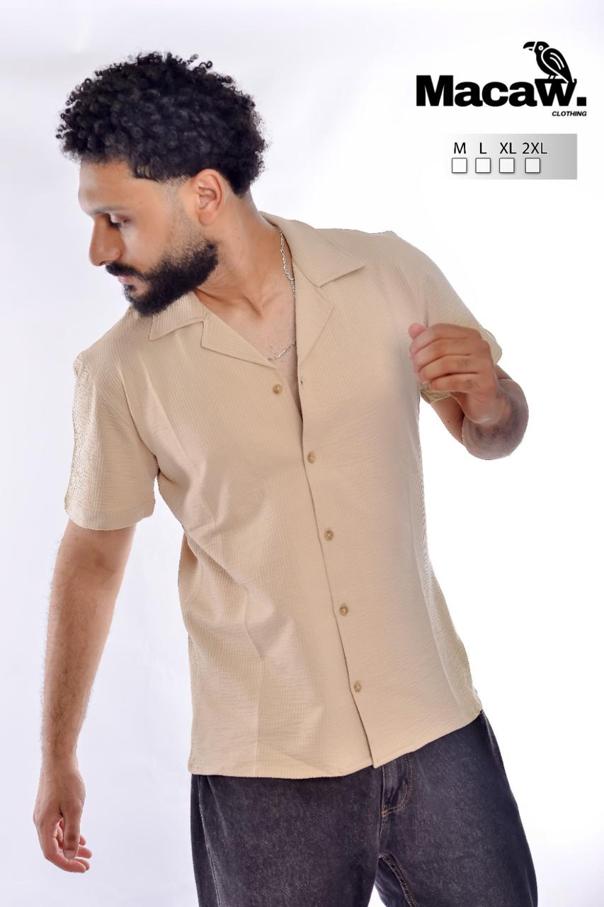 Stay cool and stylish with this lightweight beige cotton shirt. Designed for comfort and breathability, it's perfect for summer days. Simple, modern, and effortlessly versatile.