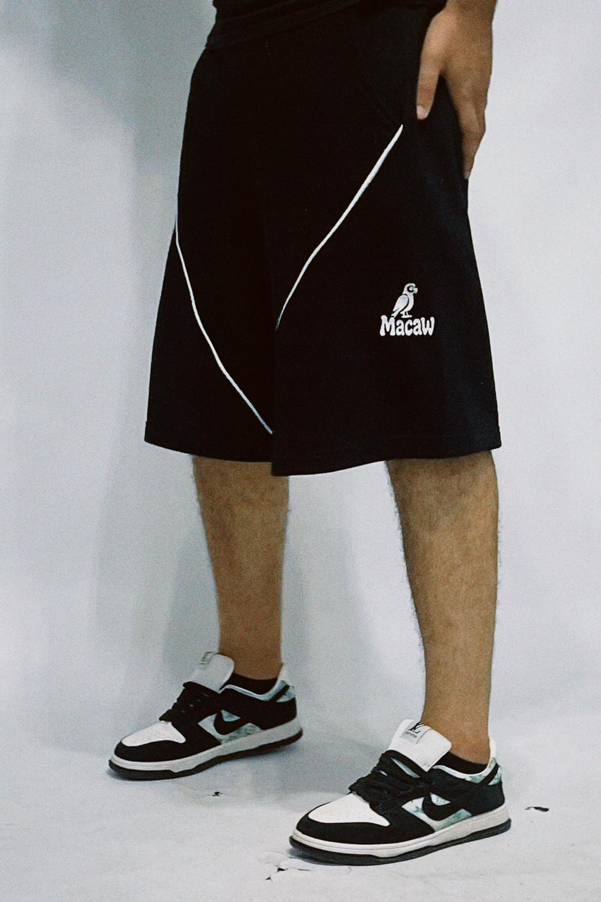 These Macaw shorts are made from 100% soft, breathable cotton for everyday comfort. Designed with a relaxed, knee-length fit and an embroidered Macaw logo, they pair easily with tees or hoodies for a casual streetwear look. Practical side pockets and a comfortable elastic waistband make them ideal for lounging or light activity.